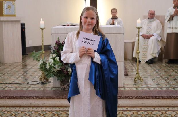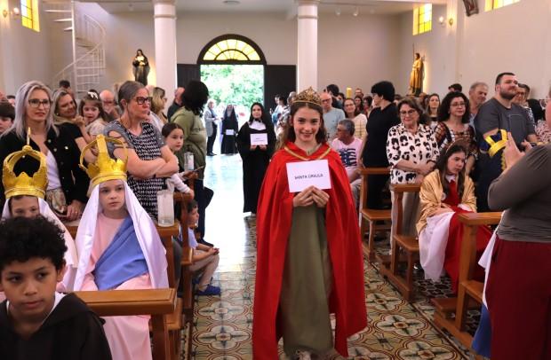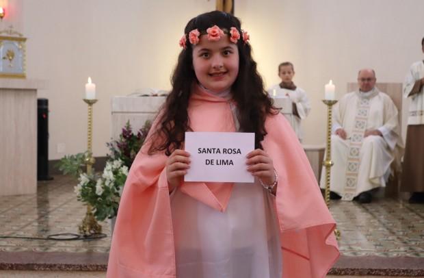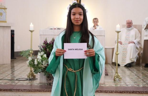 As crianças e adolescentes da Catequese marcaram a celebração de forma lúdica e representativa: eles se caracterizaram com as roupas de diversos santos e santas da Igreja Católica, além de representações de Maria Santíssima, trazendo à memória os exemplos de fé que a data recorda. Ao longo dos últimos encontros, junto com as catequistas, pesquisaram sobre a vida e as virtudes de tantos que a Igreja reconheceu por testemunharem a fé em Cristo.