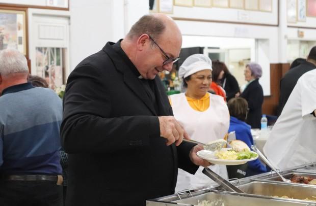 Depois da Missa, o Salão Paroquial ficou lotado para o almoço de confraternização, que reuniu os familiares, amigos do Santuário de Caravaggio e da cidade de Paraí, além de representantes das comunidades e dos festeiros de Santo Antônio das edições de 2022 a 2025. A Paróquia presenteou padre Volmir com uma estola personalizada, que traz na estampa a imagem de Santo Antônio que está no Santuário, em Bento.