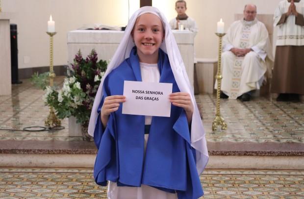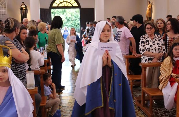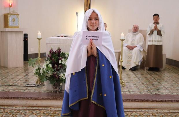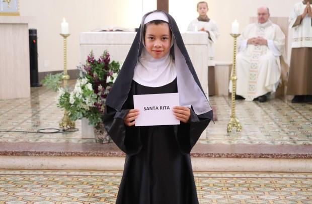 As crianças e adolescentes da Catequese marcaram a celebração de forma lúdica e representativa: eles se caracterizaram com as roupas de diversos santos e santas da Igreja Católica, além de representações de Maria Santíssima, trazendo à memória os exemplos de fé que a data recorda. Ao longo dos últimos encontros, junto com as catequistas, pesquisaram sobre a vida e as virtudes de tantos que a Igreja reconheceu por testemunharem a fé em Cristo.